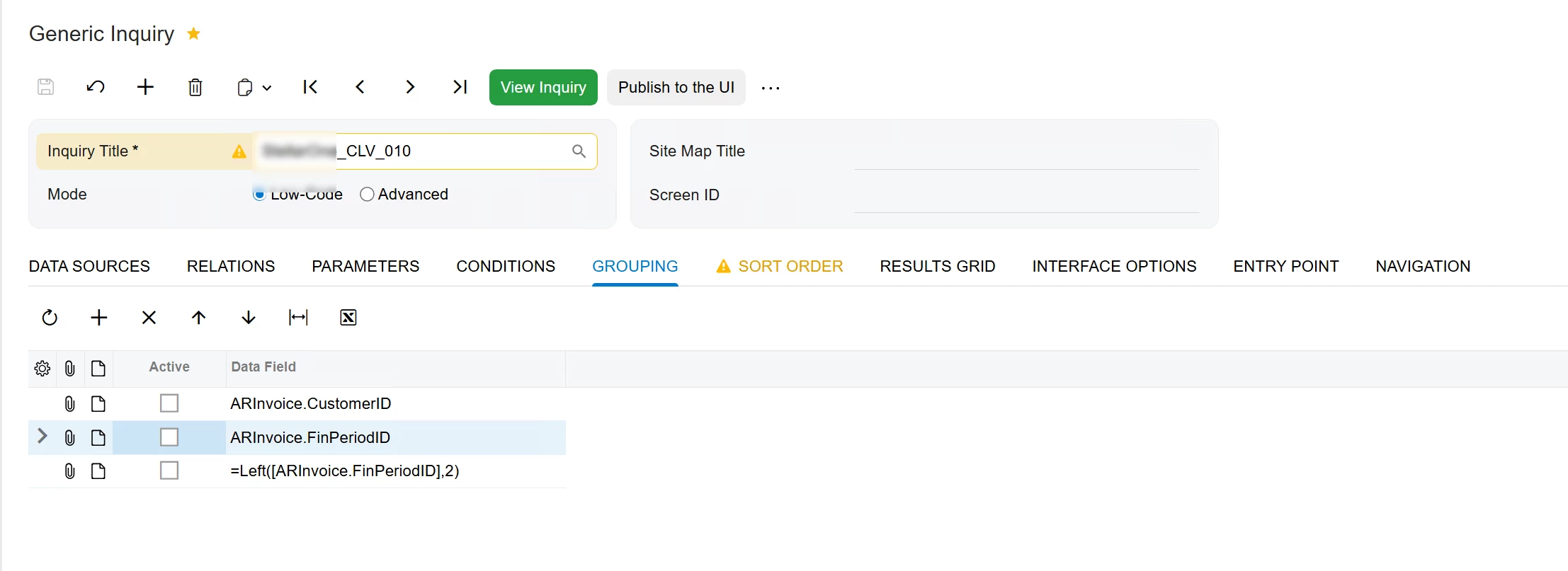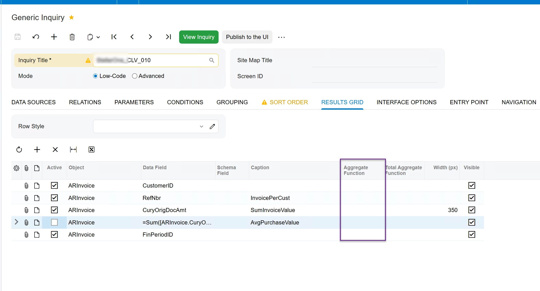 The source Inquiry, for reference, is exclusively pulling from the ARInvoice DAC.