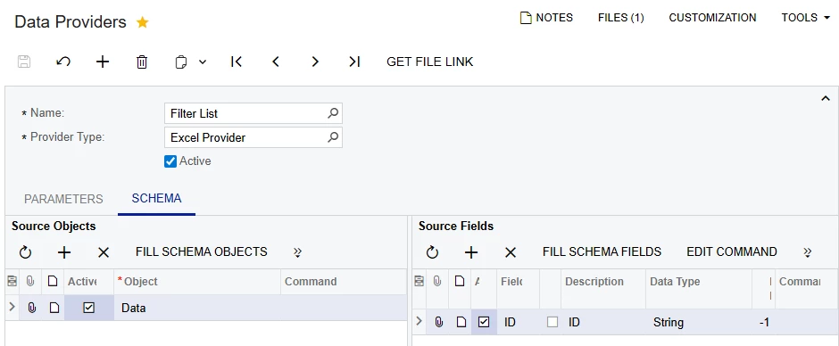 Create a simple data provider that has only one column. I find it convenient to name the tab ‘Data’ so that you can use exports from Acumatica fairly directly.