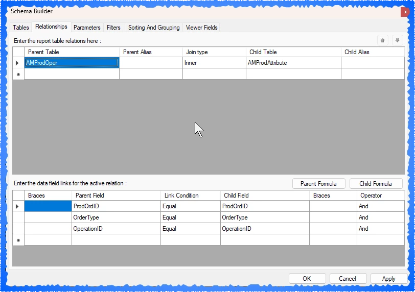 I did something similar.  We had 3 attributes on a single by and was done at the operation level.  I ended up making a sub report.  The subreport variables included production order #, type and operationID.  For the subreport to work, I had to use the AMProdOper table and join it to the AMProdAttribute DAC.  If you only used AMProdAttribute and set the parameters to be AMProdAttribute.OperationID = ‘3’ it would not work.