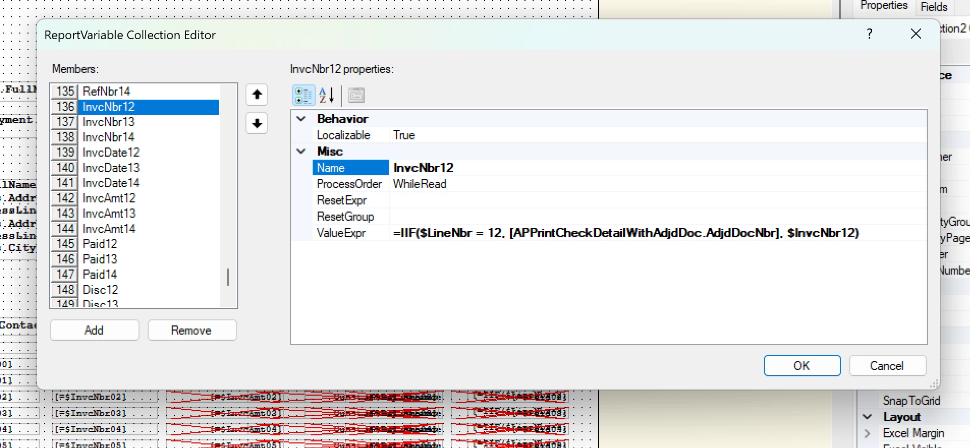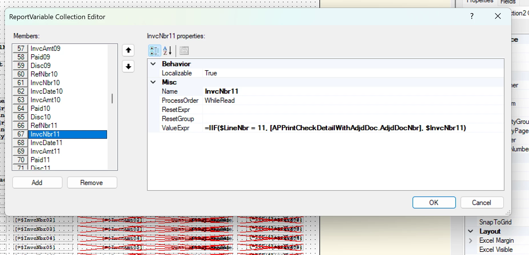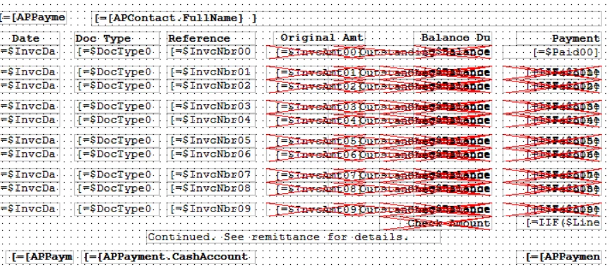 I have tried editing the RPX file to include more lines based on the lines Acumatica has out of the box, but I am getting inconsistent results when the additional lines print. I have added in Variables for additional lines and added the lines to the Report, but some of my lines are duplicating without me being able to figure out why.