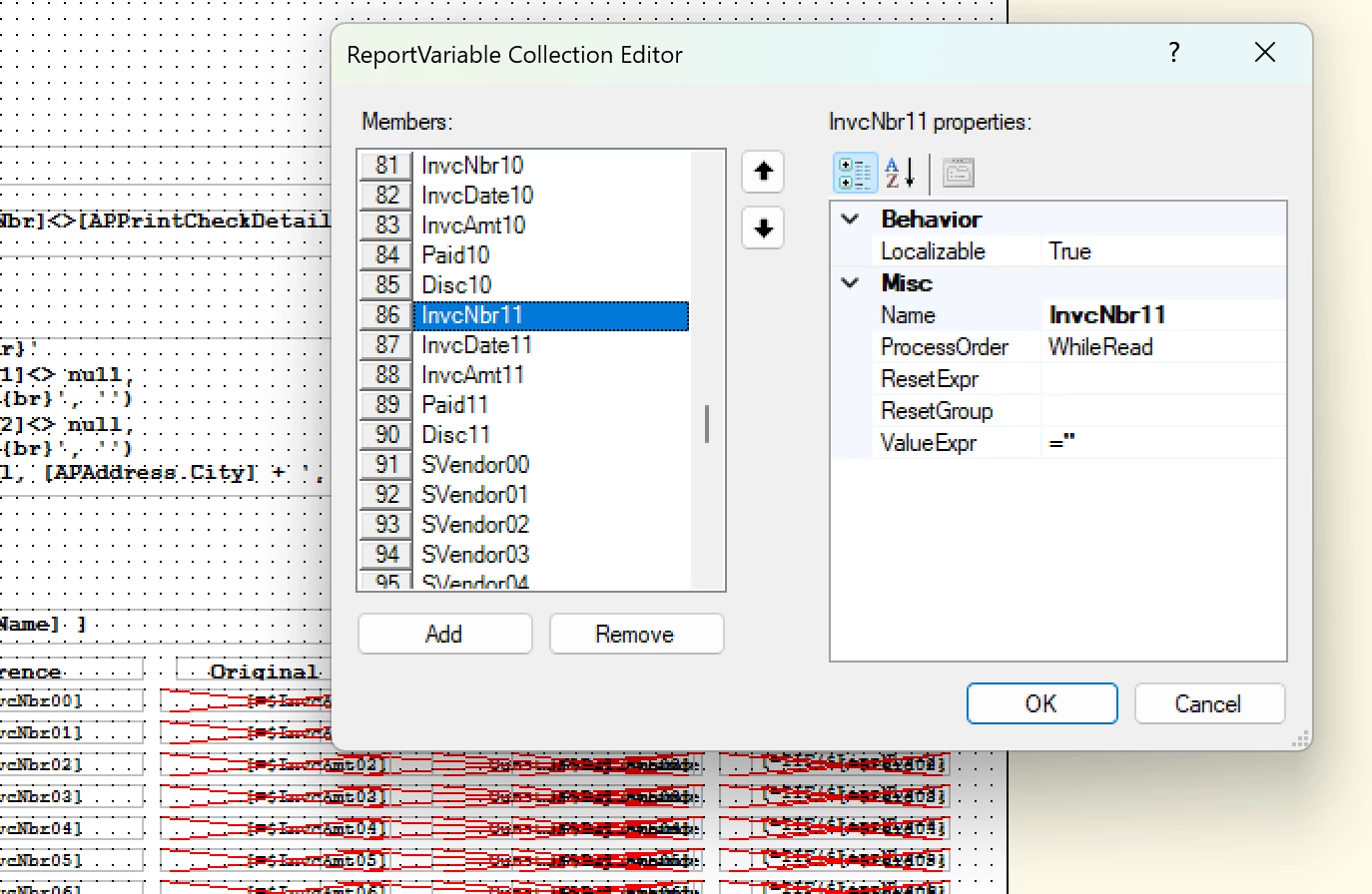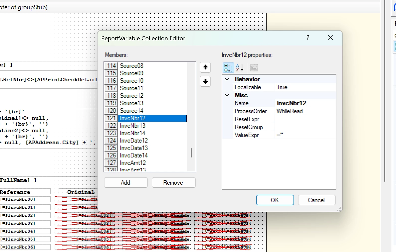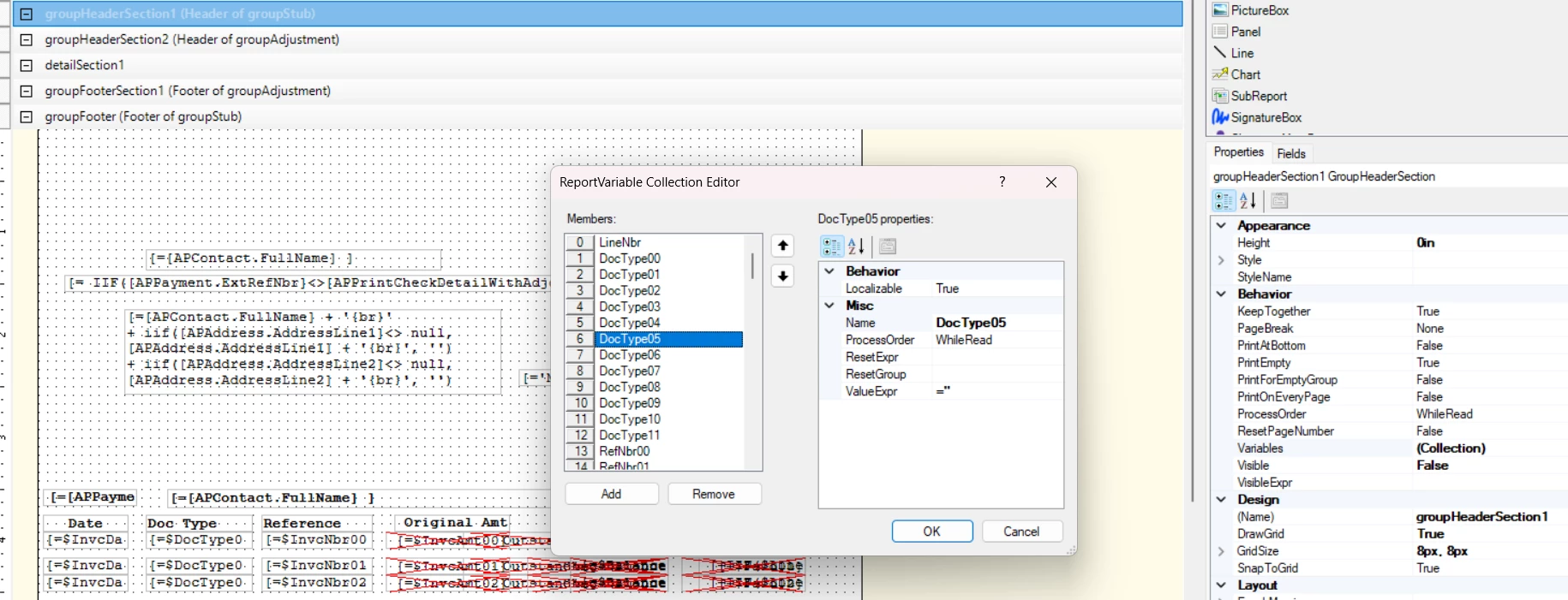 I have tried editing the RPX file to include more lines based on the lines Acumatica has out of the box, but I am getting inconsistent results when the additional lines print. I have added in Variables for additional lines and added the lines to the Report, but some of my lines are duplicating without me being able to figure out why.