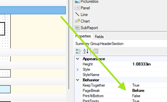 I am trying to create a report on sew tag, which requires page break. However, on inspection, there is no page break feature available in my Acumatica Report Designer. Is this a system glitch or is the feature available and I can configure it. And if rightfully so, please guide me on how to do the same.