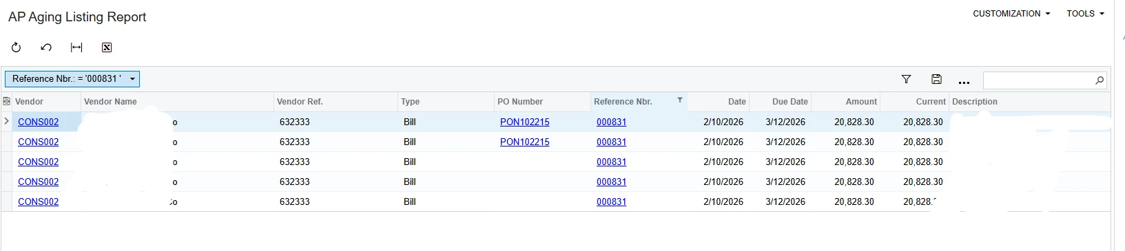 I am working on a GI for AP Aging that gets exported to Excel. The PO Number is a requirement for this GI, but there is a something causing duplicate records.