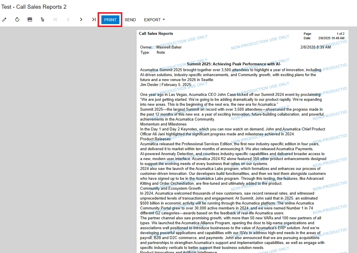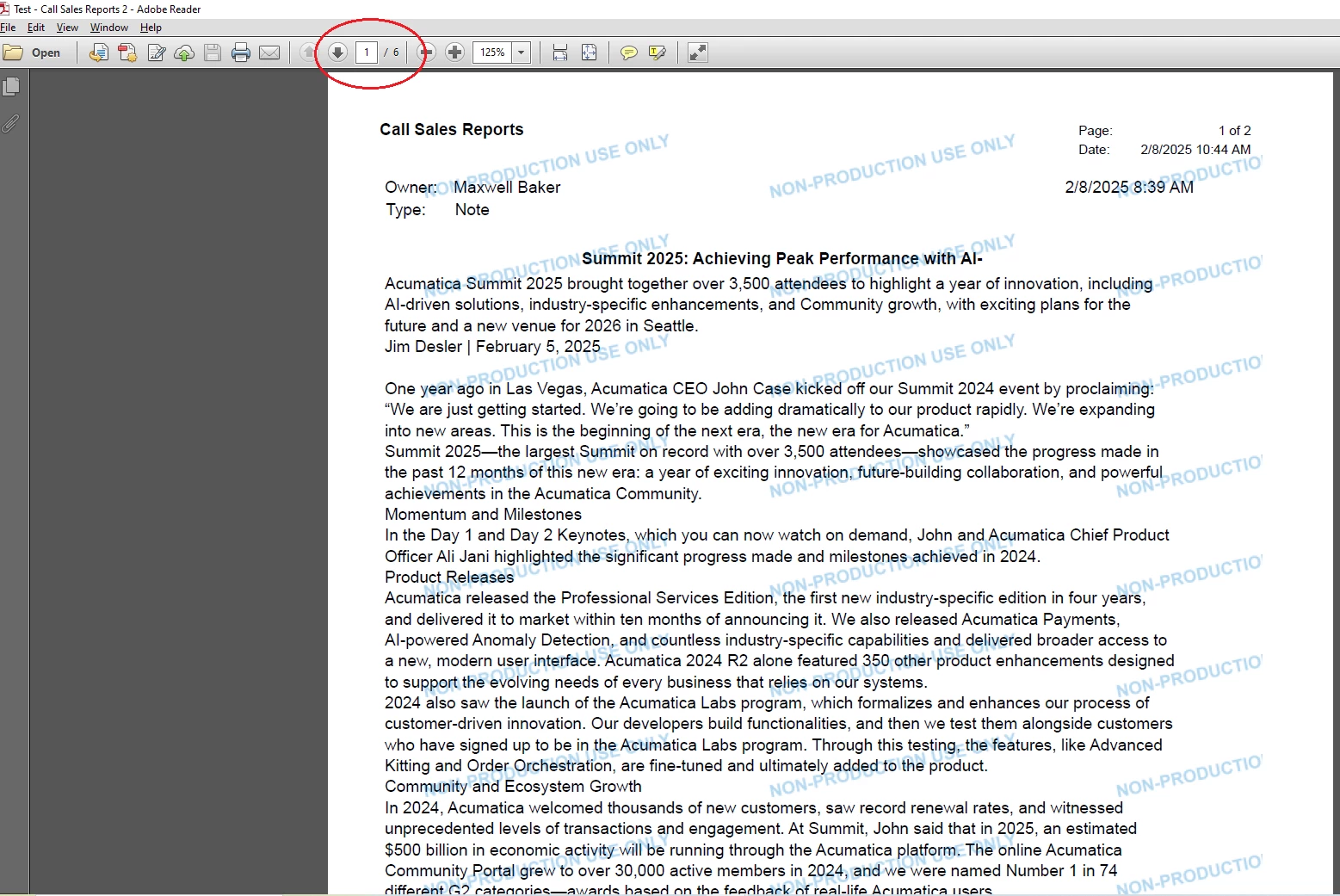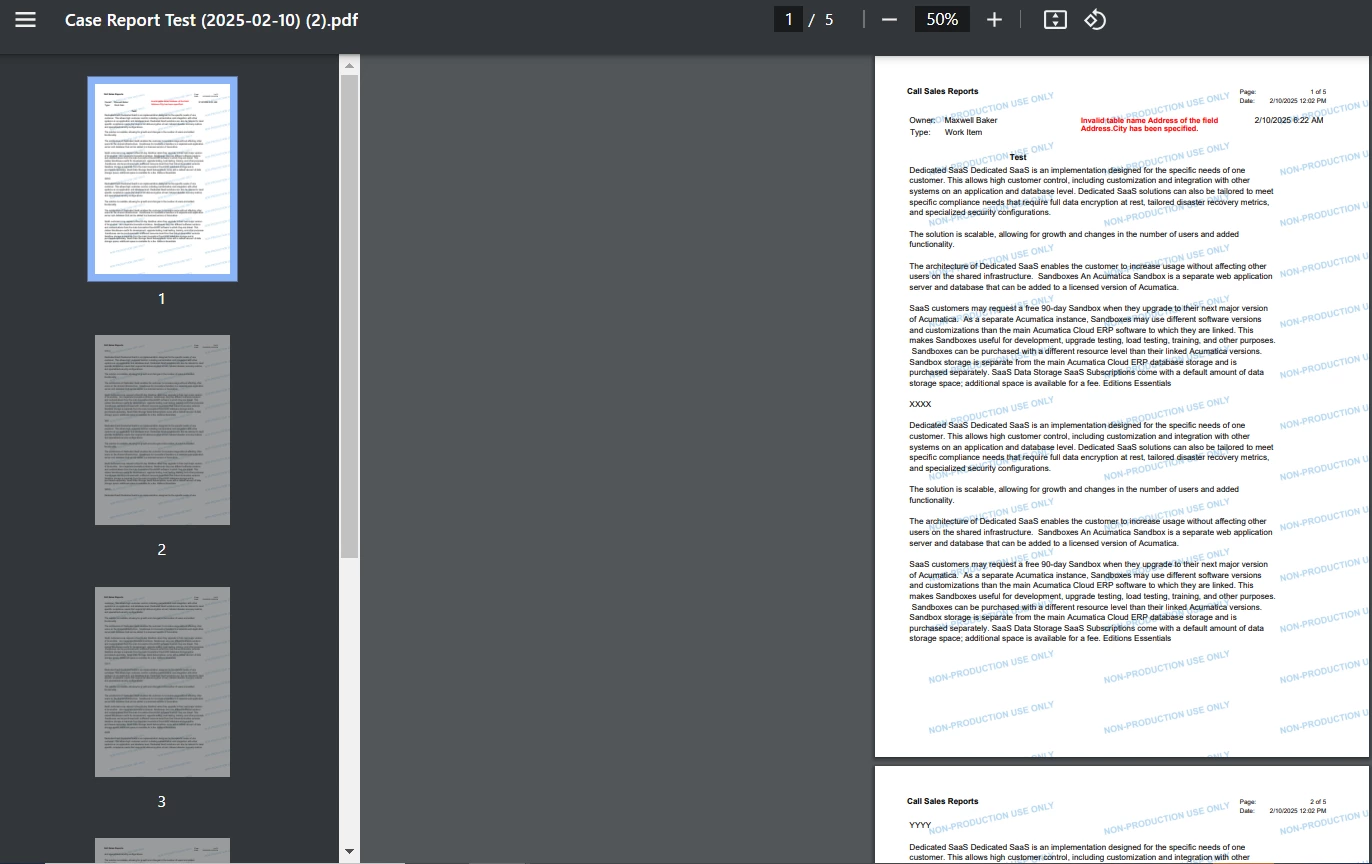 Call Sales Reports working in Report Designer, incomplete when rendering as a PDF