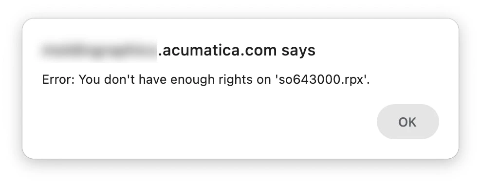 Error: You don't have enough rights on 'so643000.rpx'.