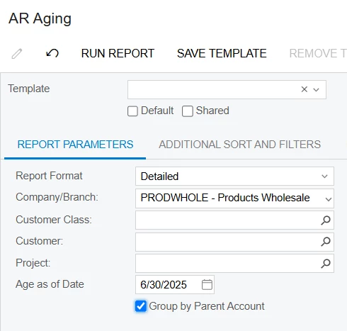 Another report to consider is the AR Aging report which can be run by customer with a Detailed format. On this report you can also select whether or not to group by parent account.