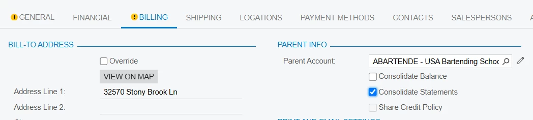 The system will generate a consolidated statement if that option is selected on the Billing tab of the child account. With this option selected, you won’t be able to generate a separate statement for the child account.