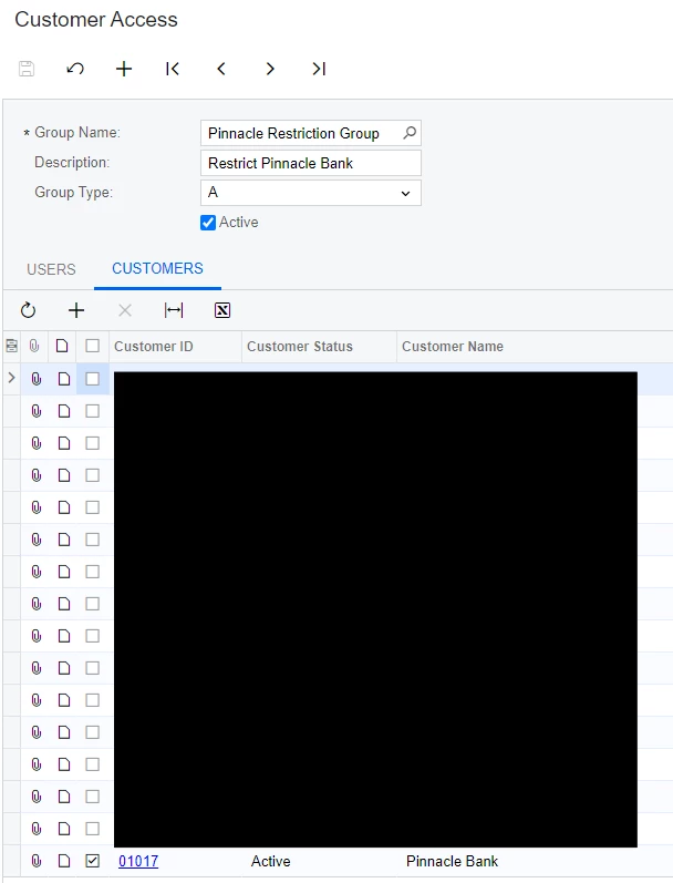 I am not opposed to configuring each user, do you know if there is a training document associated with Restriction Groups for customers?  I was able to find screen AR102000 and created a restriction group which included 1 User and 1 Customer in a test environment.  Didn’t seem to have an effect on what they could see, I am sure I am applying it incorrectly.