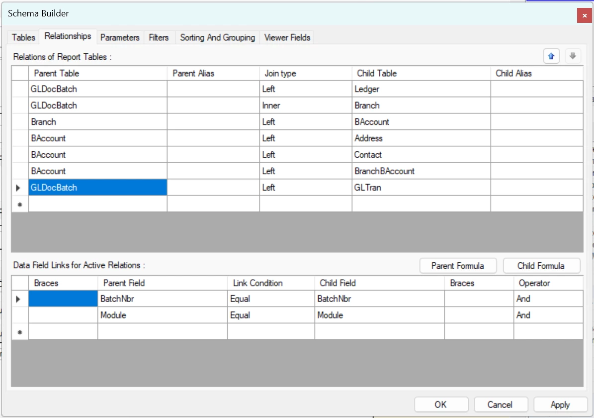 I am trying to create a Journal Voucher report from the Journal Voucher (GL304000) screen.