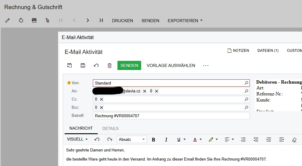I'm having trouble getting the email addresses from our customer screen to show up when sending invoices through email templates.