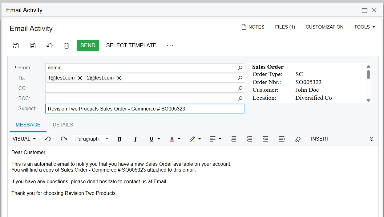 When we send invoices by email, I want to use the email addresses that are set up in the customer screen under "Send & Print"