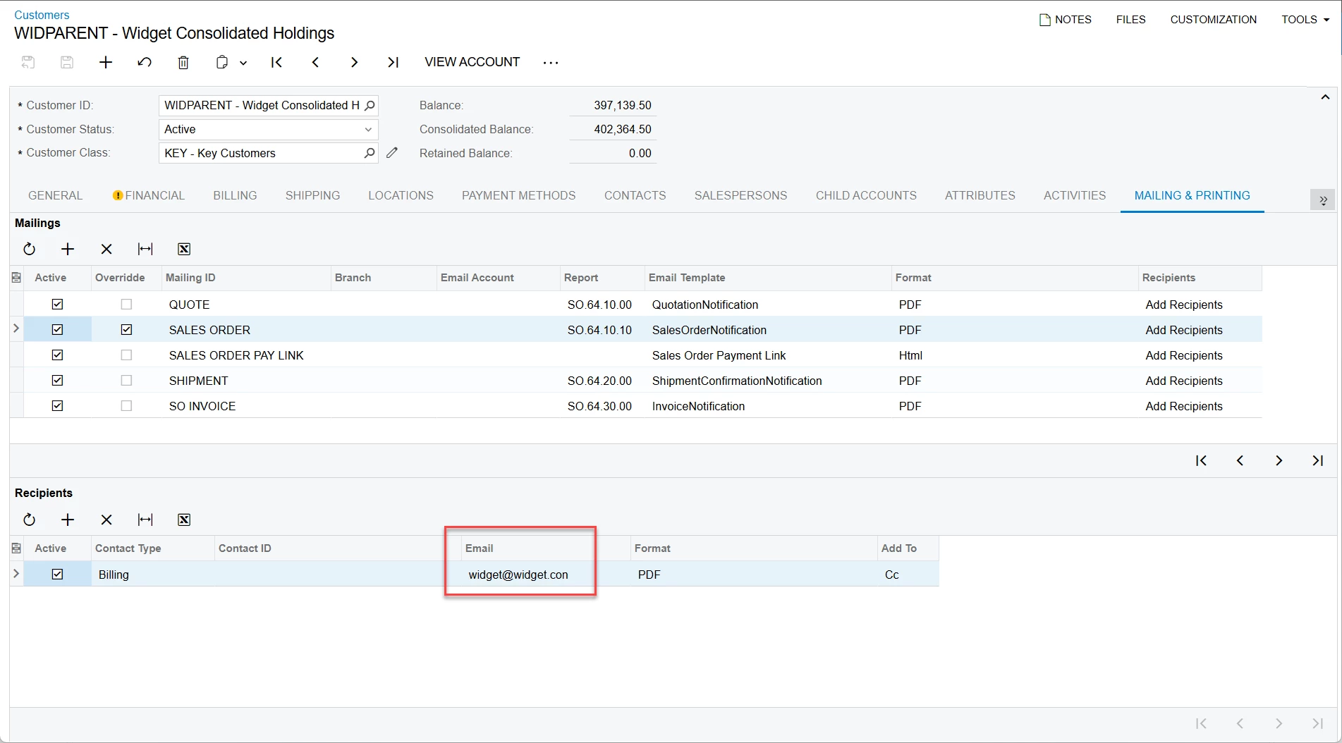 I am trying to setup Sales Order Notification Email templates to use information from the Mailing & Printing tab of the customer record as well as the Sales order.