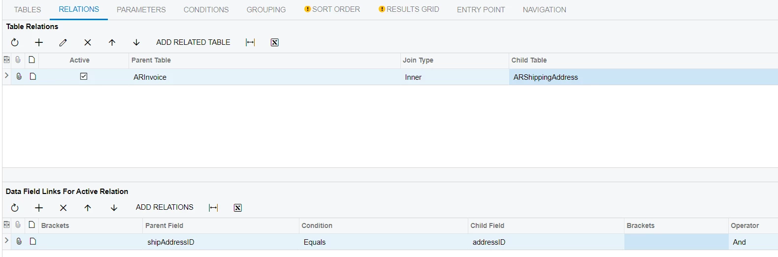 I have added the ARInvoice. and  ARShippingAddress tables,