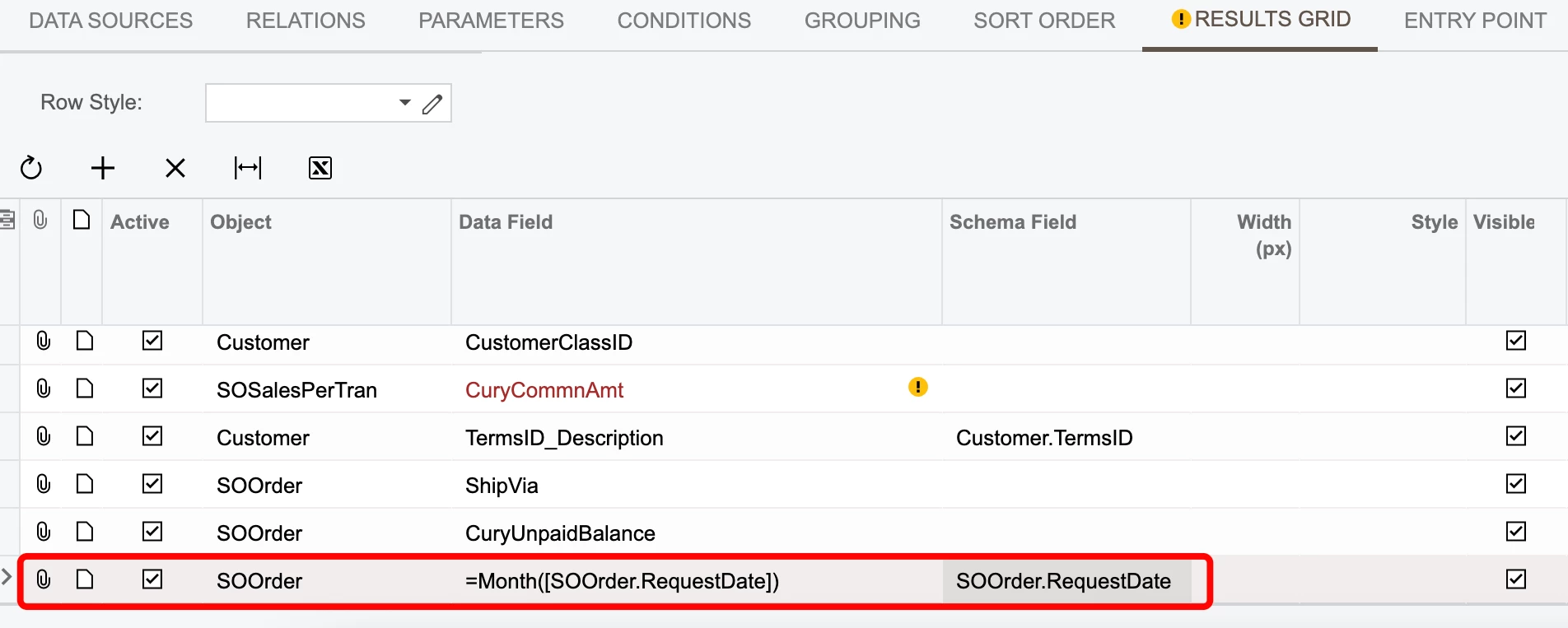I am working on an SO Order generic inquiry that lists the Requested On field date as just Month Name (e.g. if date is 10/20/2025 the results should read October).