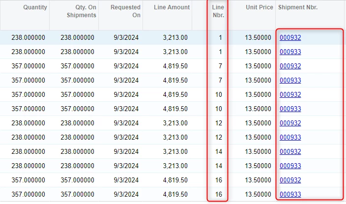 Currently, I’m facing an issue with a Generic Inquiry for Sales Orders with multiple shipments. The problem is that we are seeing duplicate lines in the inquiry. Specifically, the Sales Order lines are not being correctly linked to the Shipment lines, resulting in each item being displayed multiple times—once for each shipment associated with the order.