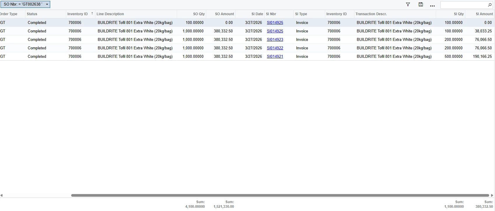 Hello, is there a way to prevent duplicated quantities and amounts for items that are shipped and invoiced multiple times? This is for a single sales order that is invoiced multiple times due to split deliveries.