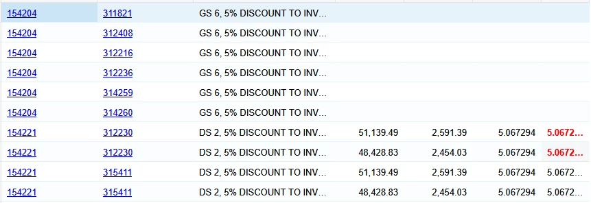 Example 1: 154221 has two invoices (312230, 315411), but they are both duplicated with each others information.