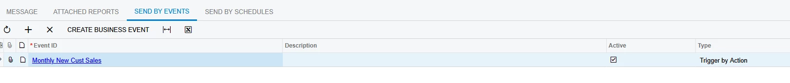 With a trigger by action, you do have to select one or all rows in order for the business event to trigger. I might have forgot to write that before.