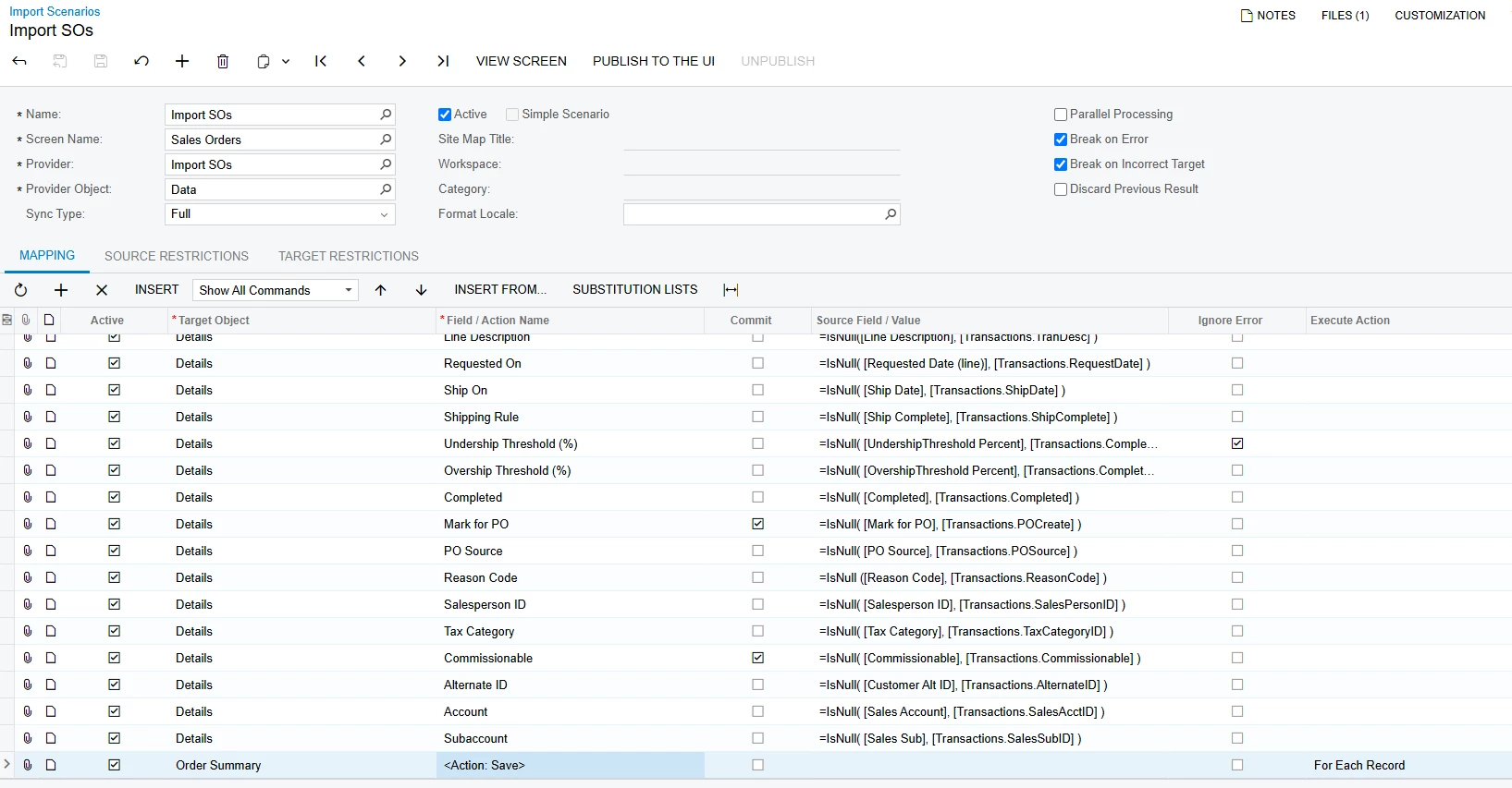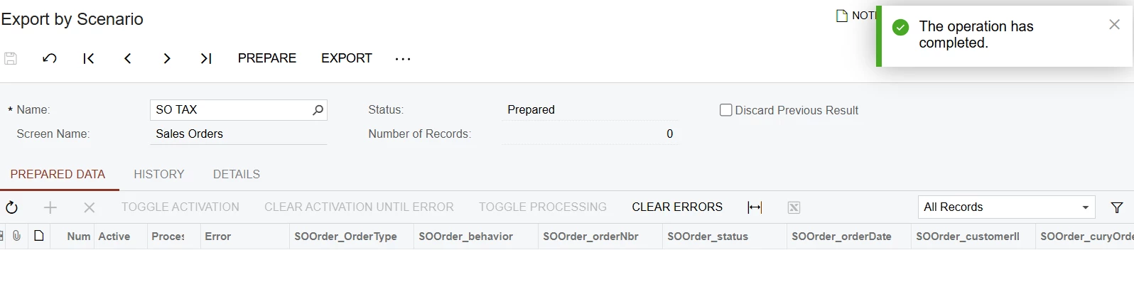 hi, All. I am working on export scenario and data provider is GI. I am trying to update sales order fields using data provider GI. But Export by scenario is not showing any records. I am trying to put/update/rewrite tax tab in sales order screen.Can some one please guide me on this