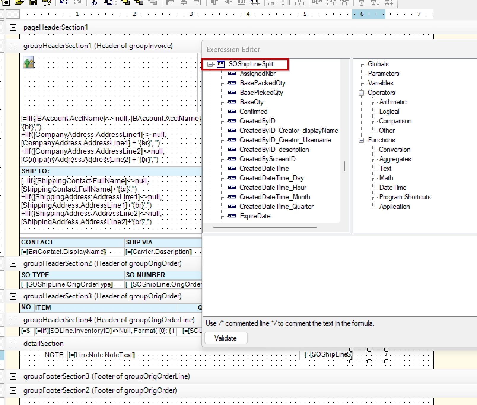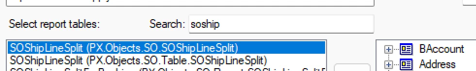 @rkenna Have you already tried removing the SOShipLineSplit table from the report and then re-adding it back? In the past I’ve seen this needed to be done if the issue is related to customization. If it were an attribute it might be able to be restored just by refactoring, but see it works to remove the table and add it back.