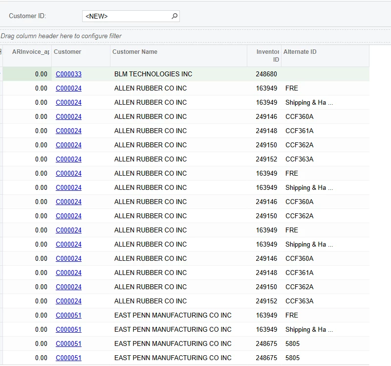 ARInvoice.CustomerID = Customer.BAccountID Type Inner Join