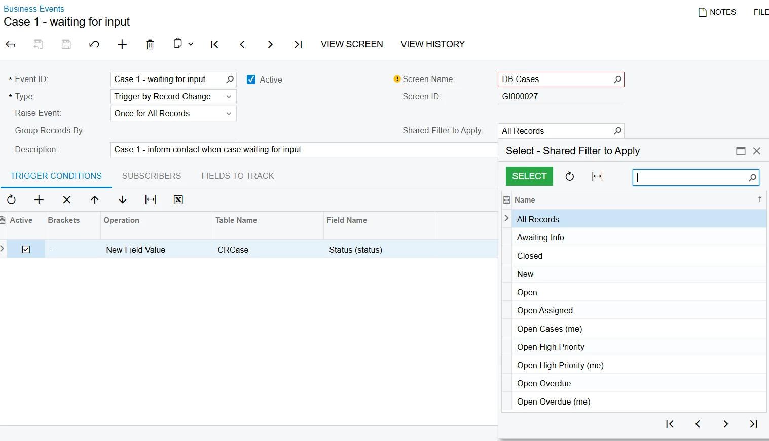 ^this is the “Drilldown” filter that gets applied when going from the Sales Manager Dashboard. It shows the exact info I need, but i cannot set this up as a business event; it drops the filter.