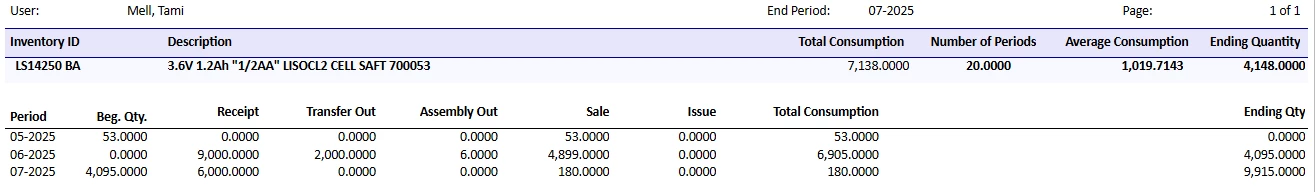 I modified our Historical Inventory report to get average consumption data for a group of periods.