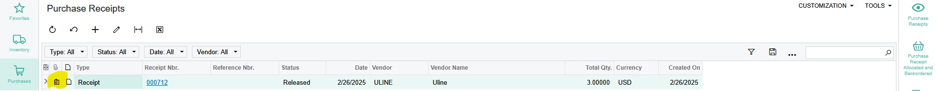 I want to create a GI that shows the attachment/file Icon like this one on the Purchase Receipts GI. This will actually be the file source I am wanting to duplicate in my GI.