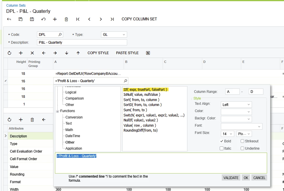 IIf(PageCount=1,@ReportDescr,’ ‘)