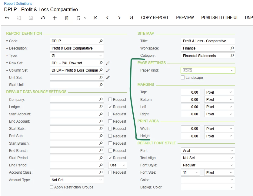 ARM reports have only one header area -- not separate areas to configure Report Header versus Page Header.