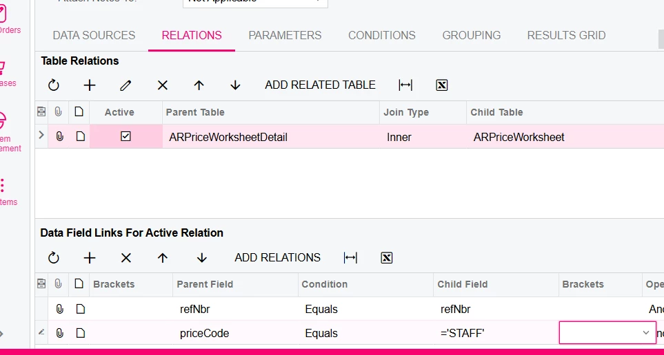 Building a GI where I need to get the most recent “Effective Date” for all inventory items that are a “STAFF” price code. The ways I’ve seen to get the most recent record in GI’s won’t work here because the effective date only lives on the ARPriceWorksheet table and not on the ARPriceWorksheetDetails table where the inventory item, price code, and pending price are.