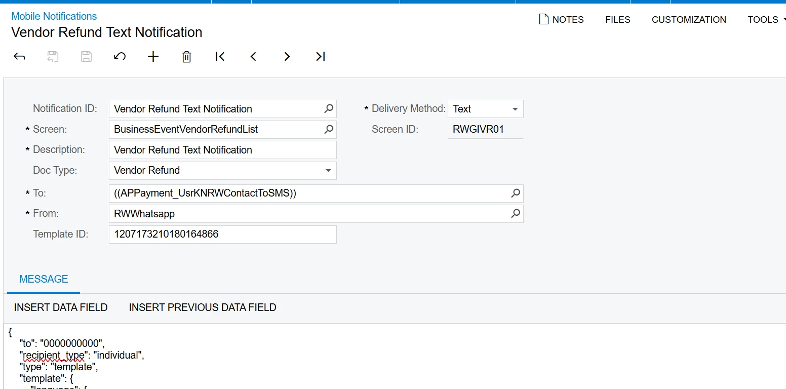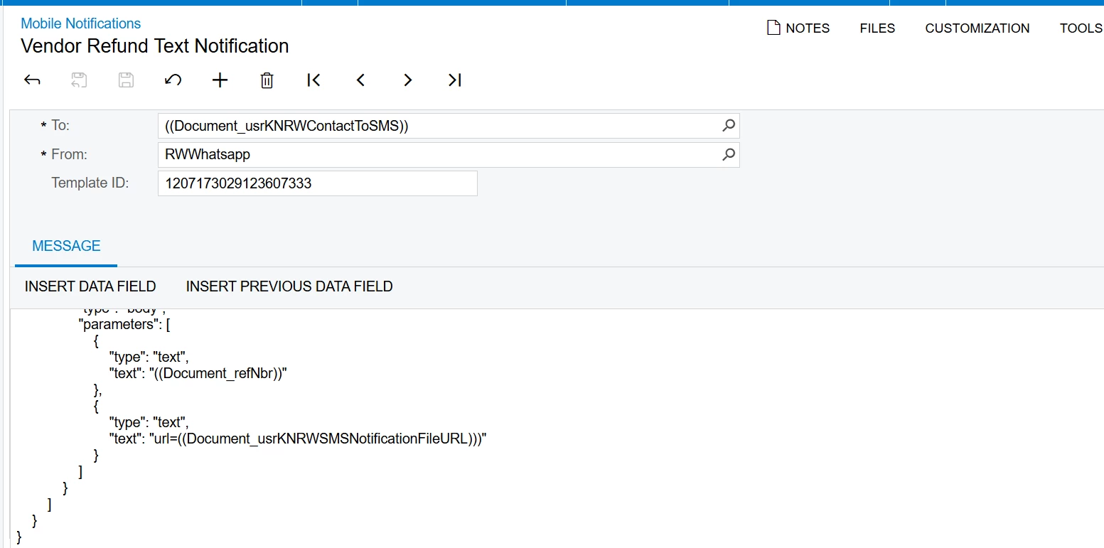 Link to GI Fields in Mobile Notification Message and to dropdown?