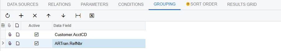 So i created this report. I'm grouping the customers first and ARtran.RefNbr. But it is not working, how can i fix it.
