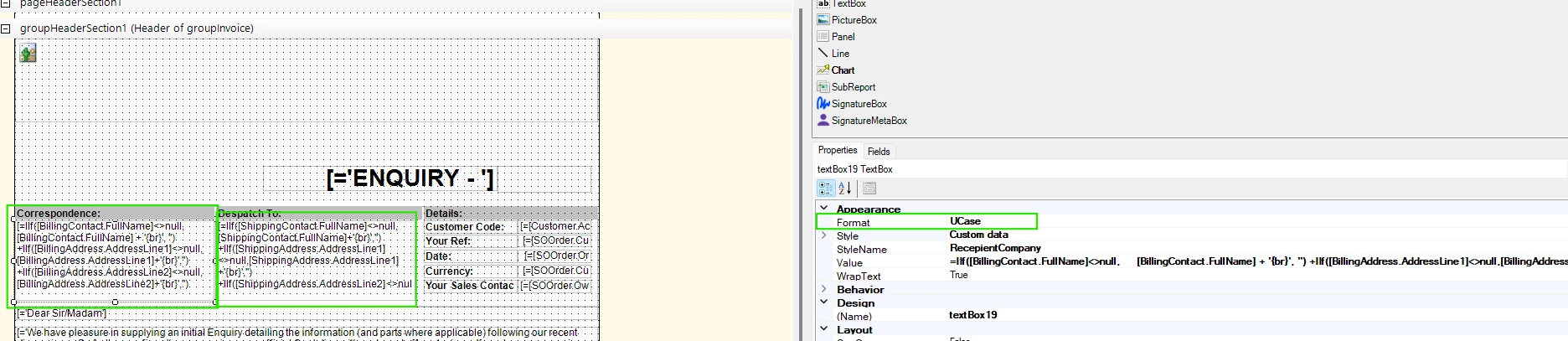 =IIf([BillingContact.Fullname]<>null, Ucaae([BillingContact.FullName])+{br}, ''))