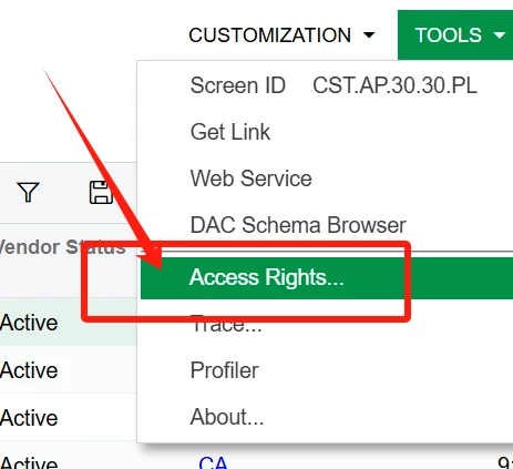 To add, when I open a PL screen in 2021R2, click Purchase Order PL, and click tools--access rights