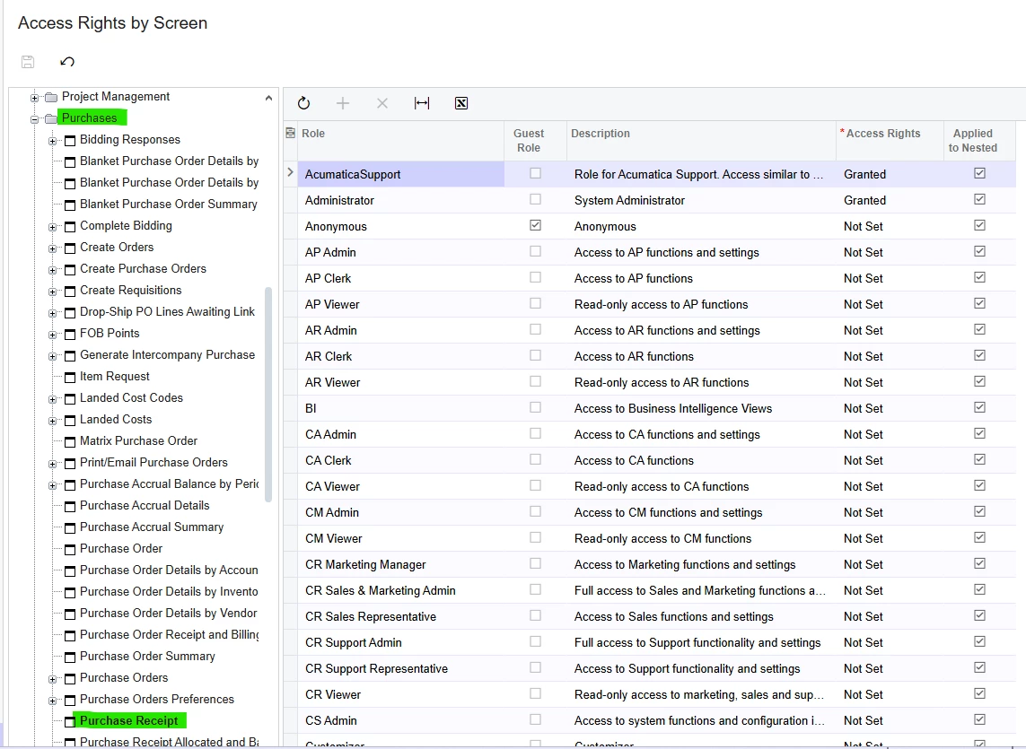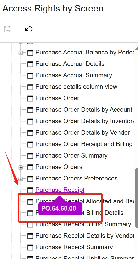 Can I clarify that you do not have access on Purchase Receipt (PO3020PL)? How to add it on your user access? Am I right?