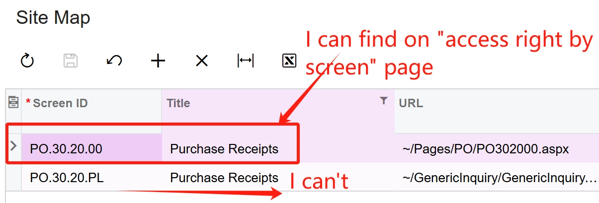 @ricoybanez   NO, In the Access Right by Screen page(SM201020), I cannot find PO3020PL. However, when printing the Access Right by Screen Report (SM651700), it shows that I (as an admin) have delete permissions for PO3020PL.