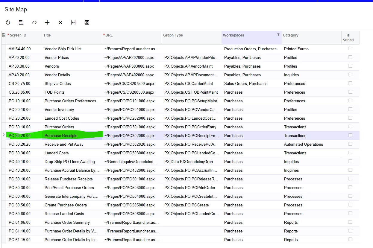 Can you check on your site map if Purchase Receipt (PO302000) exist?