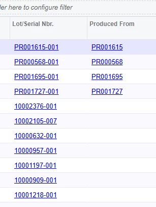 For example, we blend powder through a production order, then that powder is used as material for a Packaging Production Order. And they would like to have a link back to the creation of the material.
