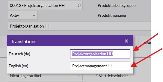 Even though both the German and English descriptions are provided, the translation is not applied in the document when switching the language to English.