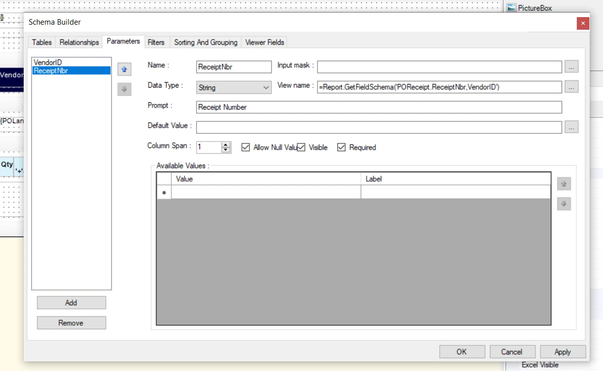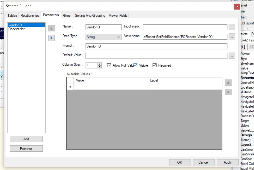 =Report.GetFieldSchema('POReceipt.ReceiptNbr,VendorID')