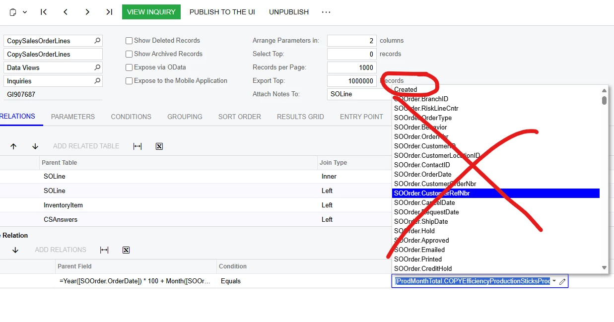 “=Year([SOOrder.OrderDate]) * 100 + Month([SOOrder.OrderDate])” which should return something like this: 202506 meaning 06 2025 (June). And they both do this on their own correctly.