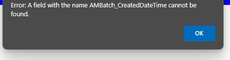 But for some reason, the system can’t find [AMBatch.CreatedDateTime] as an actual field?