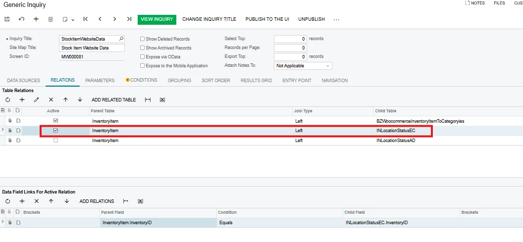 I would expect to see all inventory records, but only some are being returned.