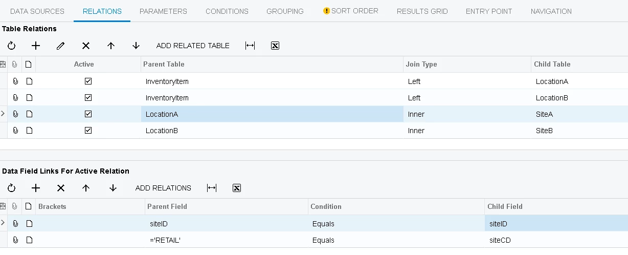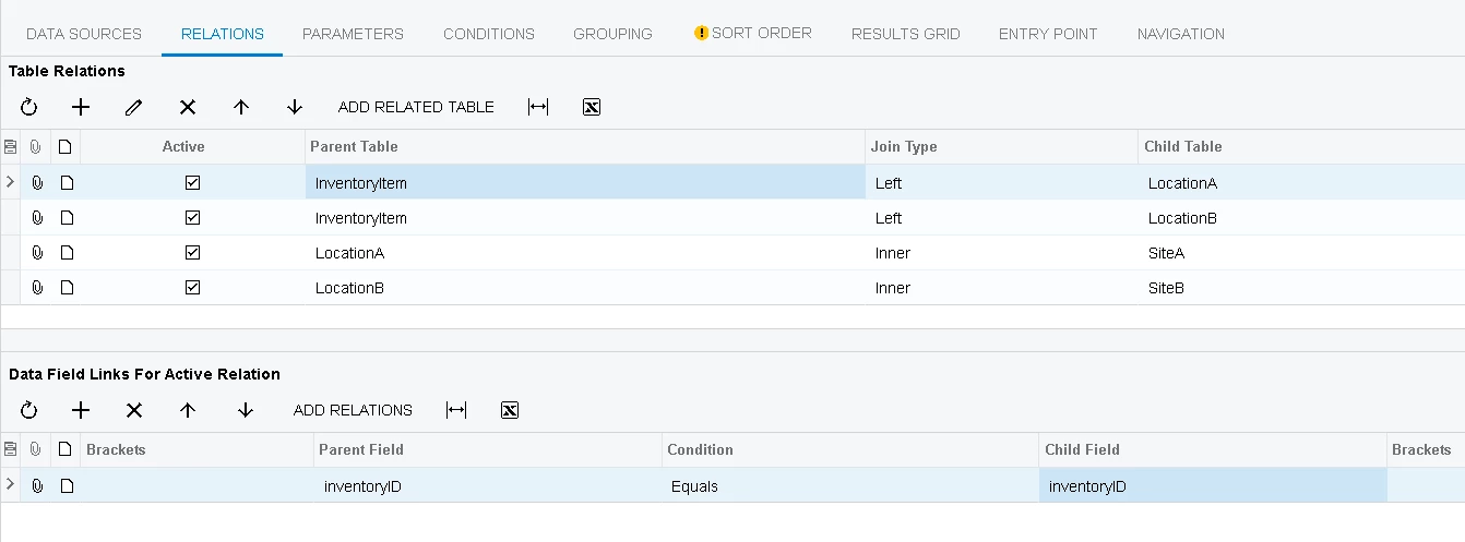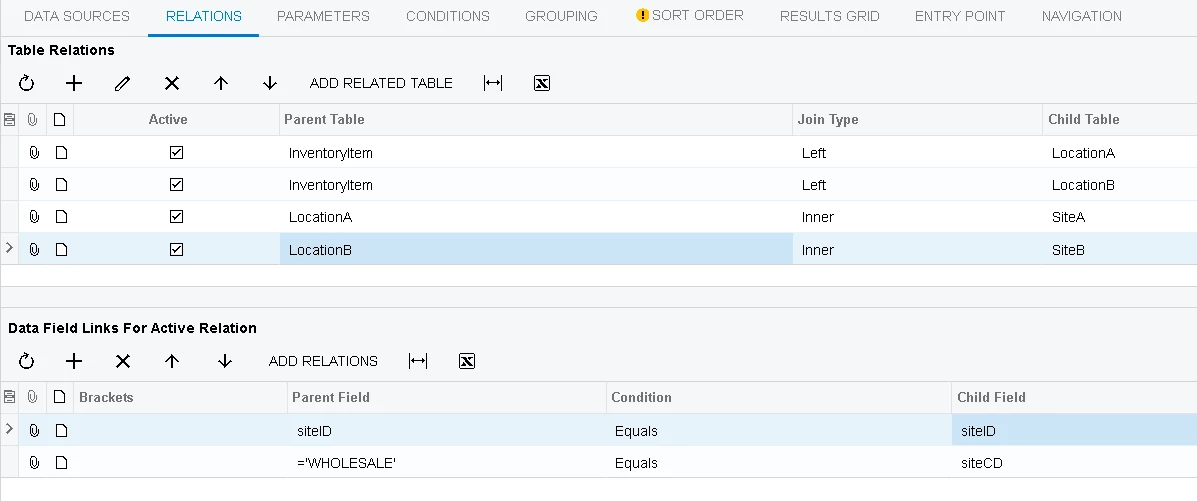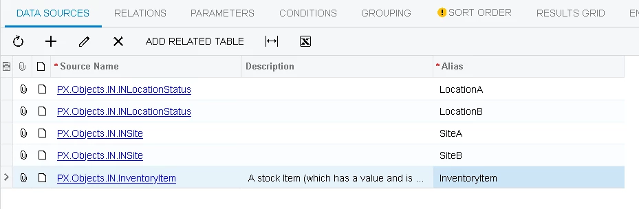 I’m wanting to show the qty available in two different warehouses as two columns. The records should all still come through, regardless of whether there is qty available or not. For this reason I used a left join: