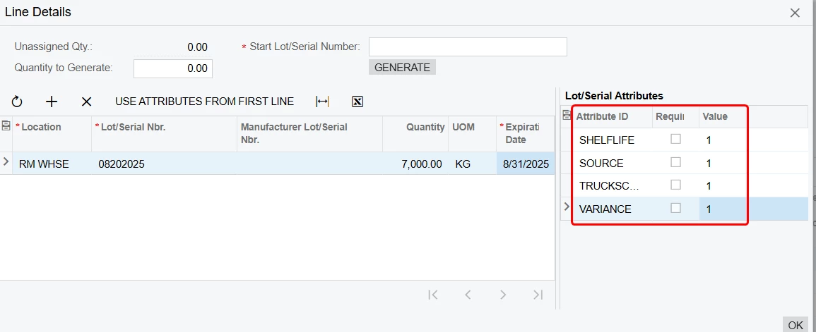 We add a lot/serial attributes to a specific item and tag this upon purchase receipts.