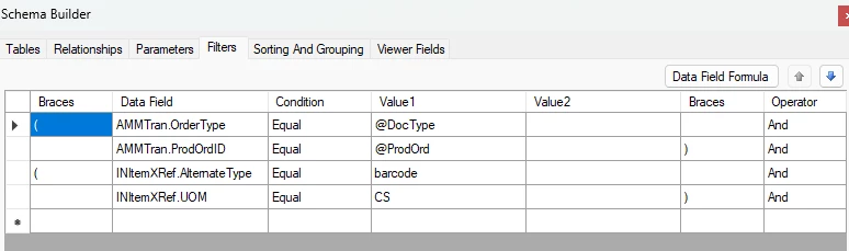We sale our items both singularly and in master packs. I have identified and converted the qty of EA into CS (master pack). I have created a custom label that prints out master pack barcodes but am having troubles in report designer for barcode selection. Each stock item has 2 barcodes, one with the UOM of EA and one with the UOM of CS. I want this report to only show CS barcodes, so I used a filter to only show barcodes that have a CS as a UOM, but it is not displaying any data with this filter. Any ideas how to display on the barcodes with CS as the UOM?