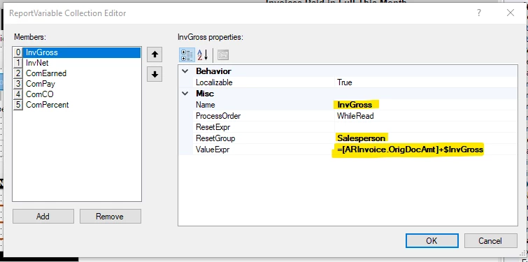 I am wondering how to add the running total of amount (PMRevenvueBudget) in the report footer based on the inventory Item ClassID description of the inventory id in the detailed section.