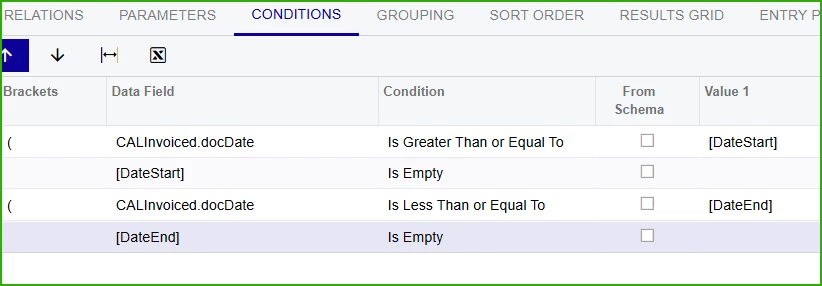 I created two subqueries. One totals the sales booked by order date and the other totals the invoices billed by doc date. When I add the two subqueries to the main query and try to filter on a date range I get the object reference error.