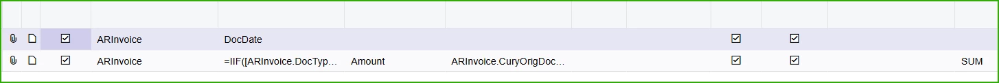 Both are grouping by date, the formula is makes the amount negative if a CM.